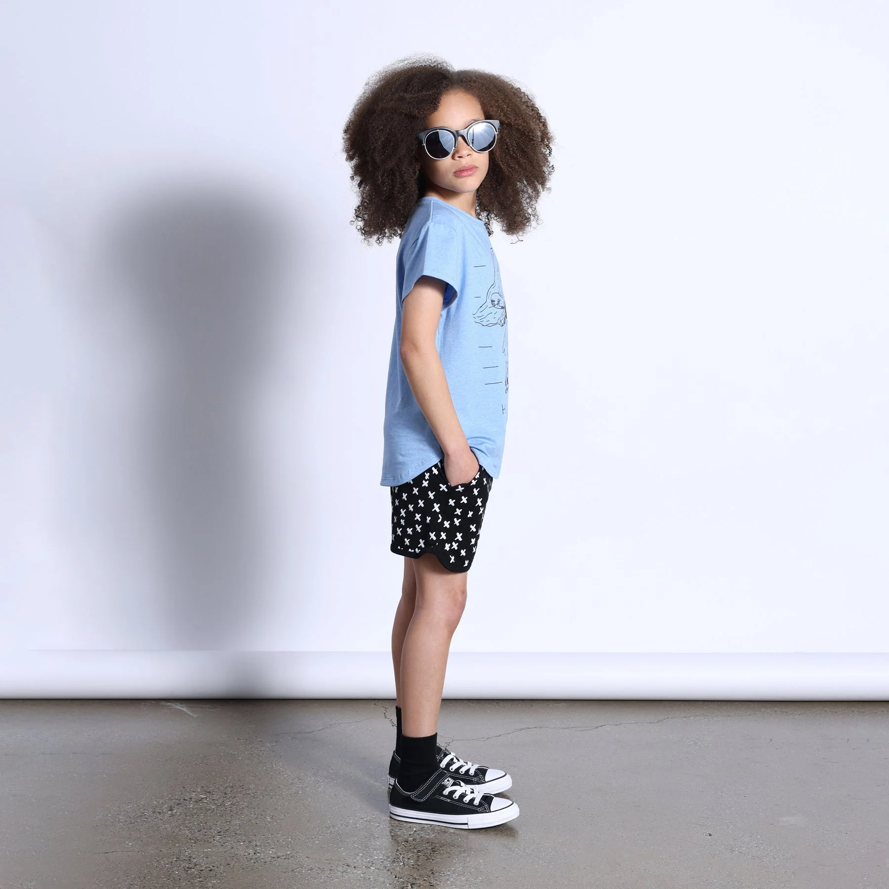 Tshirting weight shorts with elastic waist, front pockets and self rib rounded hem. 95% Cotton // 5% Elastane.